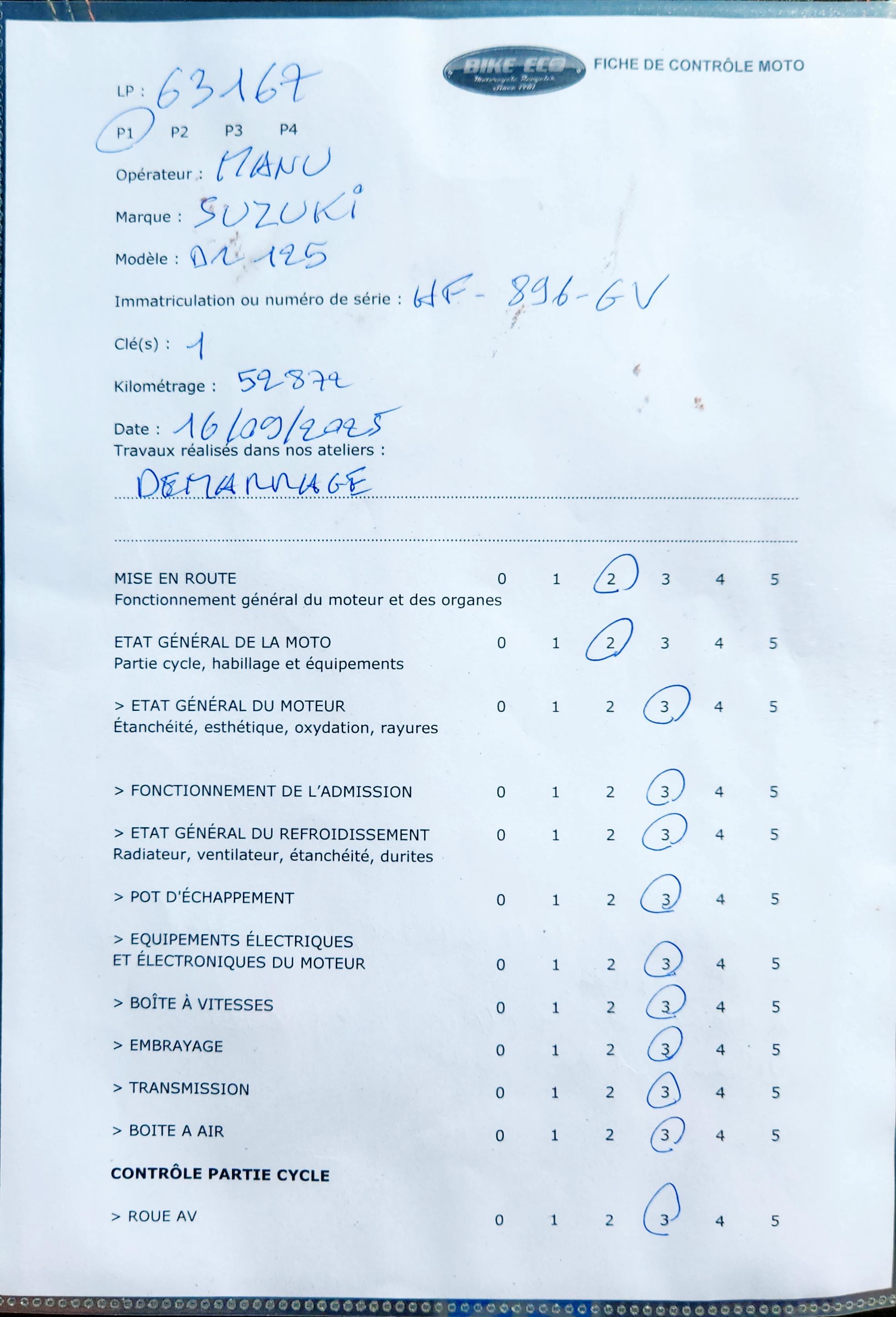| Marque / Modèle | SUZUKI DR 125 |