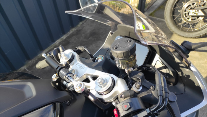 (modèle, année, kilométrage, options, état des pneus, plaquettes, kit chaîne, révision,,,)