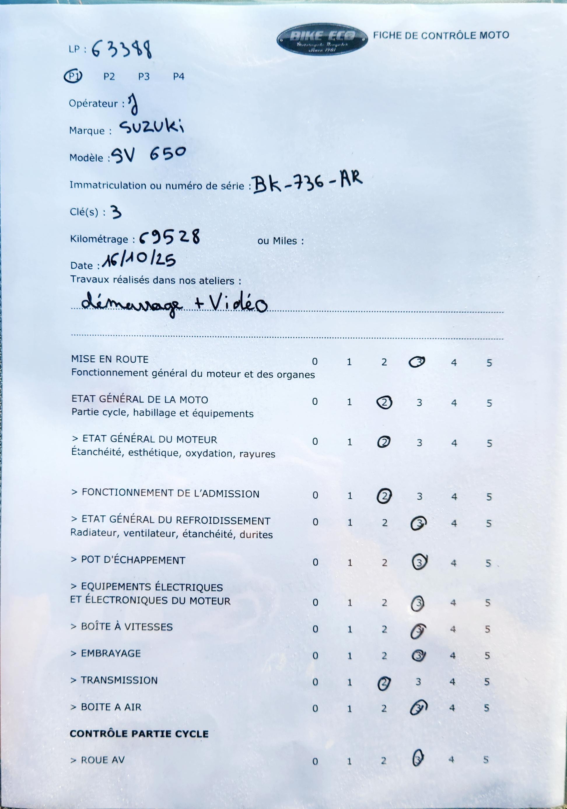 Marque / Modèle SUZUKI SV 650