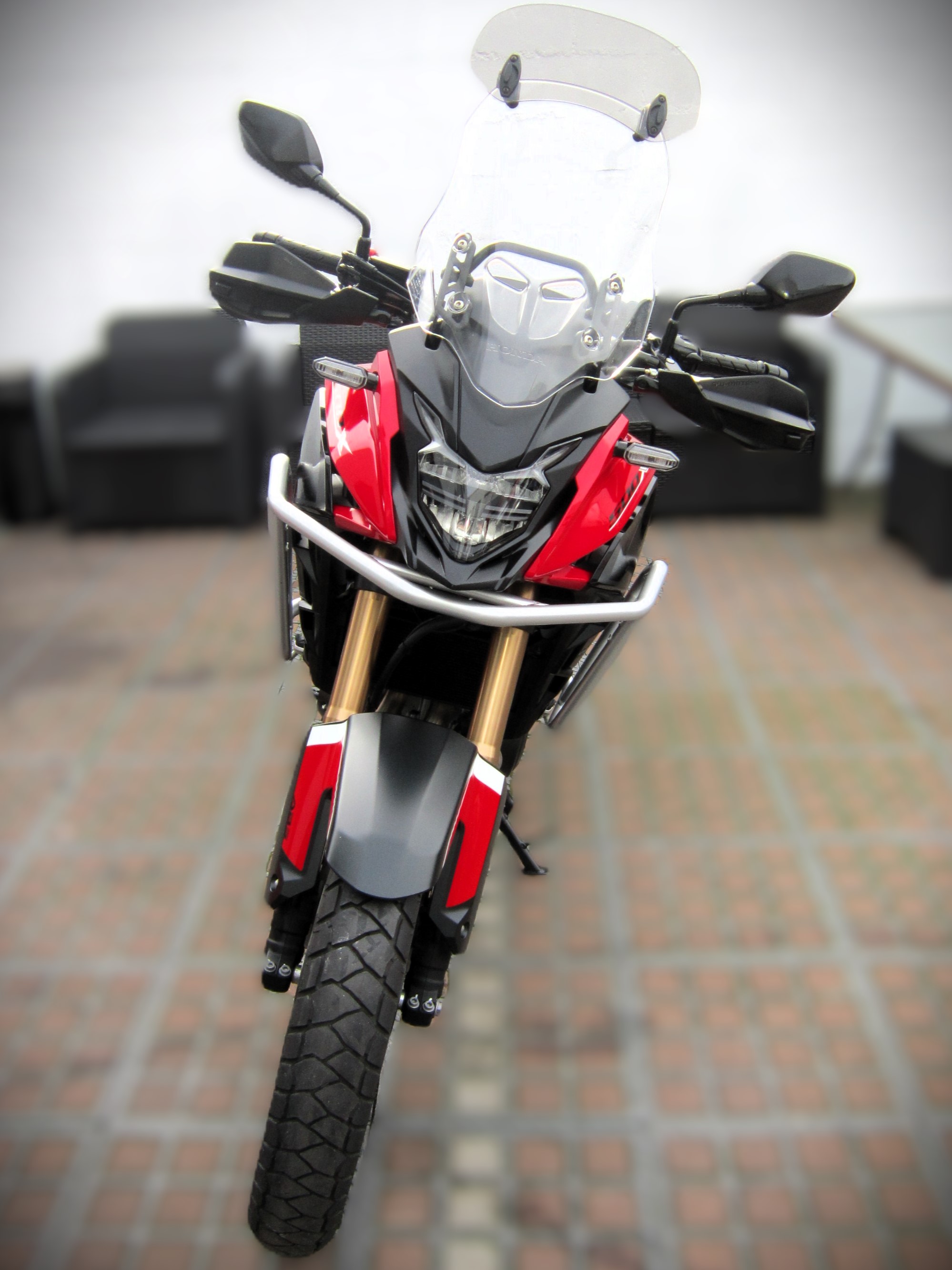 Béquille centrale, Bulle haute, Clignotants Led, Coupe circuit, Crashbar, Feu arrière à led, Pare mains, Prise 12 V, Protection réservoir, Support de valises, Support Top case, Warning