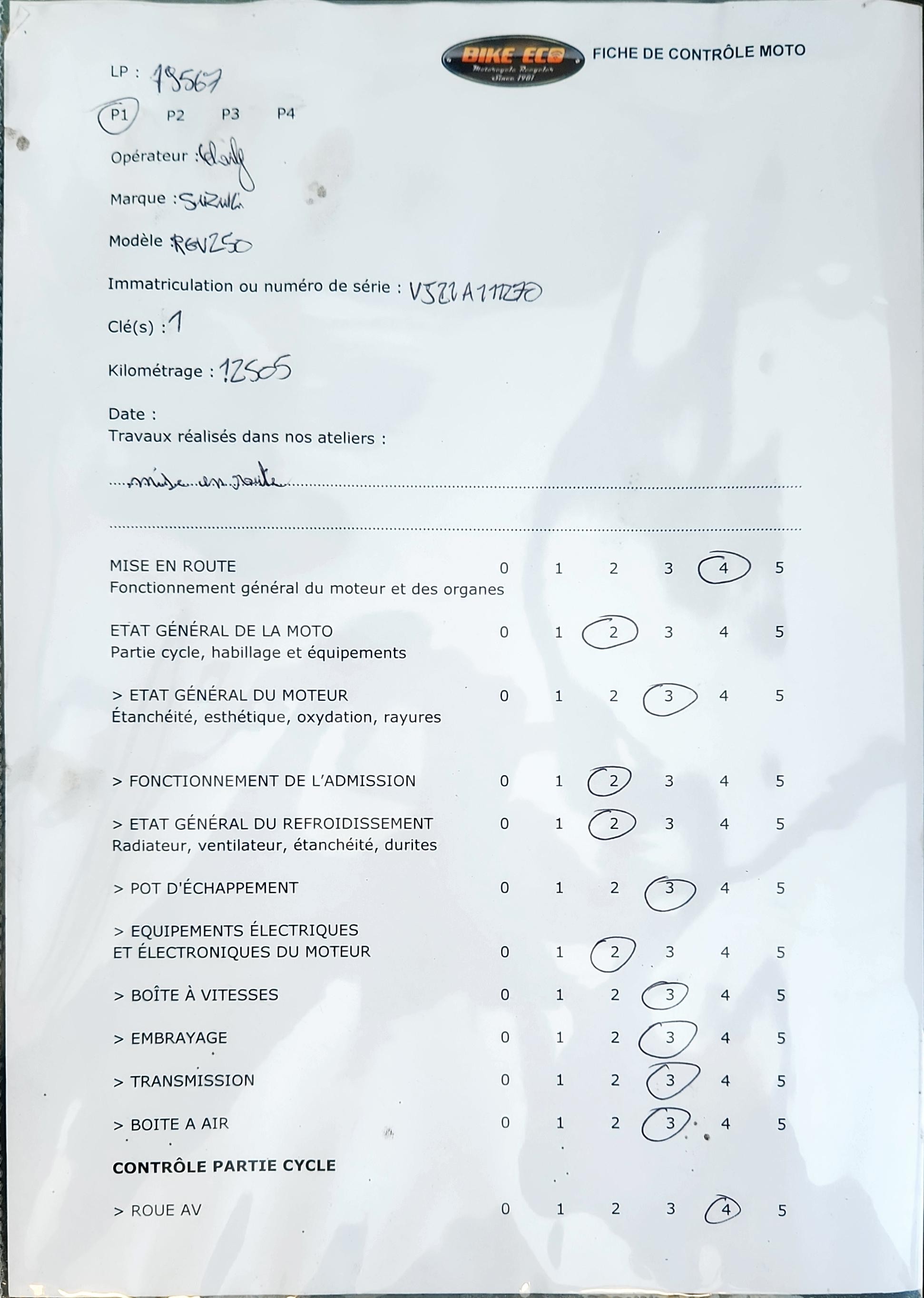 La moto démarre mais n'ayant pas d'historique il est nécessaire de la réviser avant utilisation.